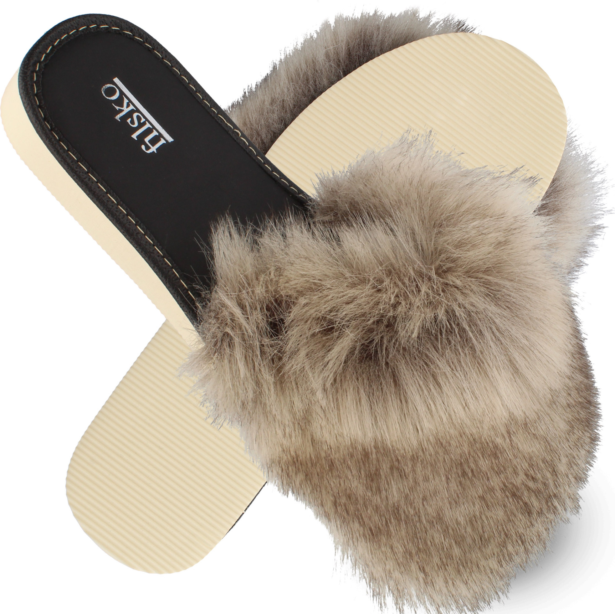 filsko Flauschige Damen Hausschuhe aus Plüschfell Hausschuh (braun)