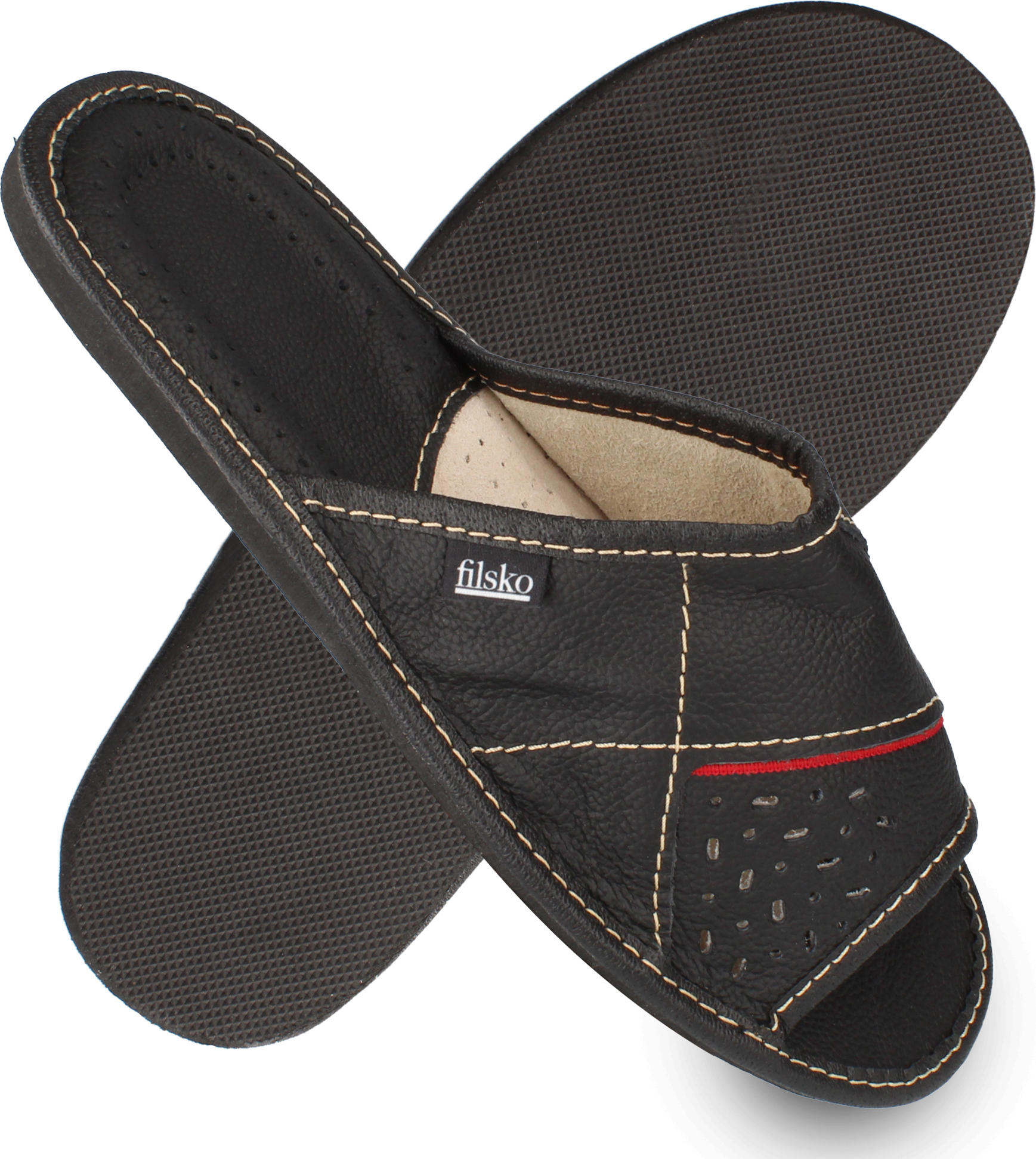 filsko Levice Herren Hausschuh Open-Toe, Slip-On, offene Hausschuhe, Pantoletten, Leder Hausschuhe (schwarz)