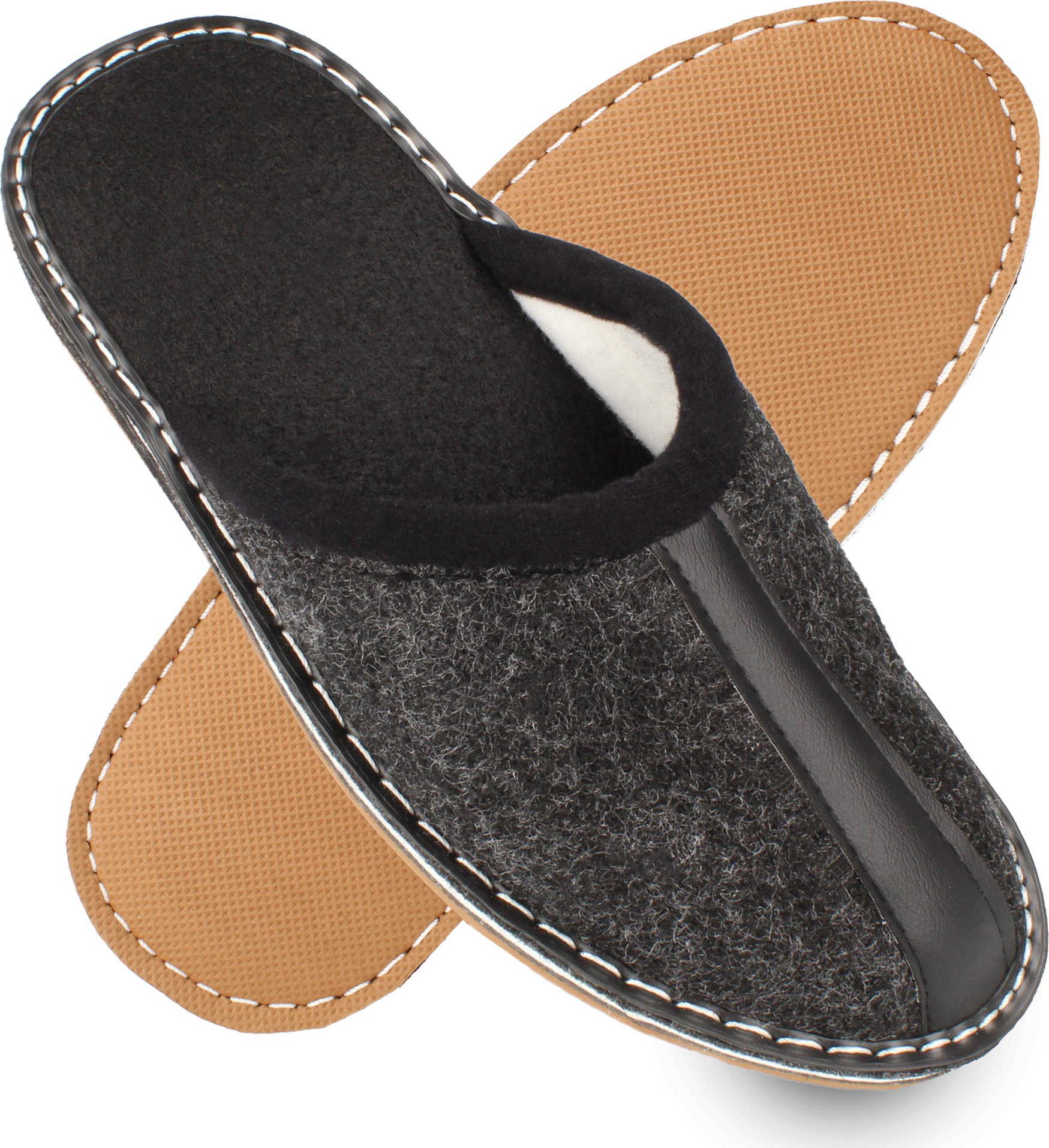 filsko Ogre Herren Filz mit Kunstleder-Streifen Hausschuh leichter Pantoffel, Slip-On, Filz- oder Gummisohle (Gummisohle)