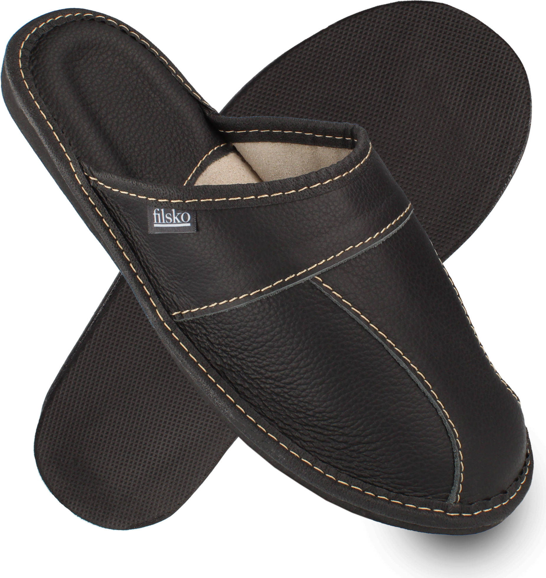 filsko Trakai Elegante Herren Pantoffeln Hausschuh ungefüttert (schwarz)