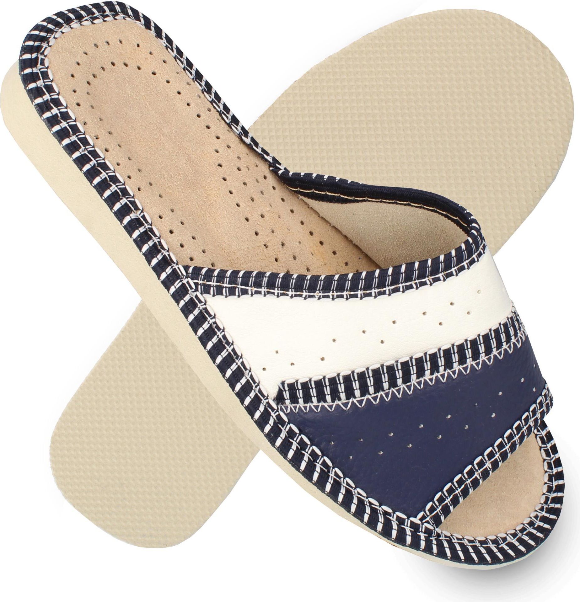 filsko Tvis Damen Hausschuh offene Pantolette grau oder weiß (blau/weiß)