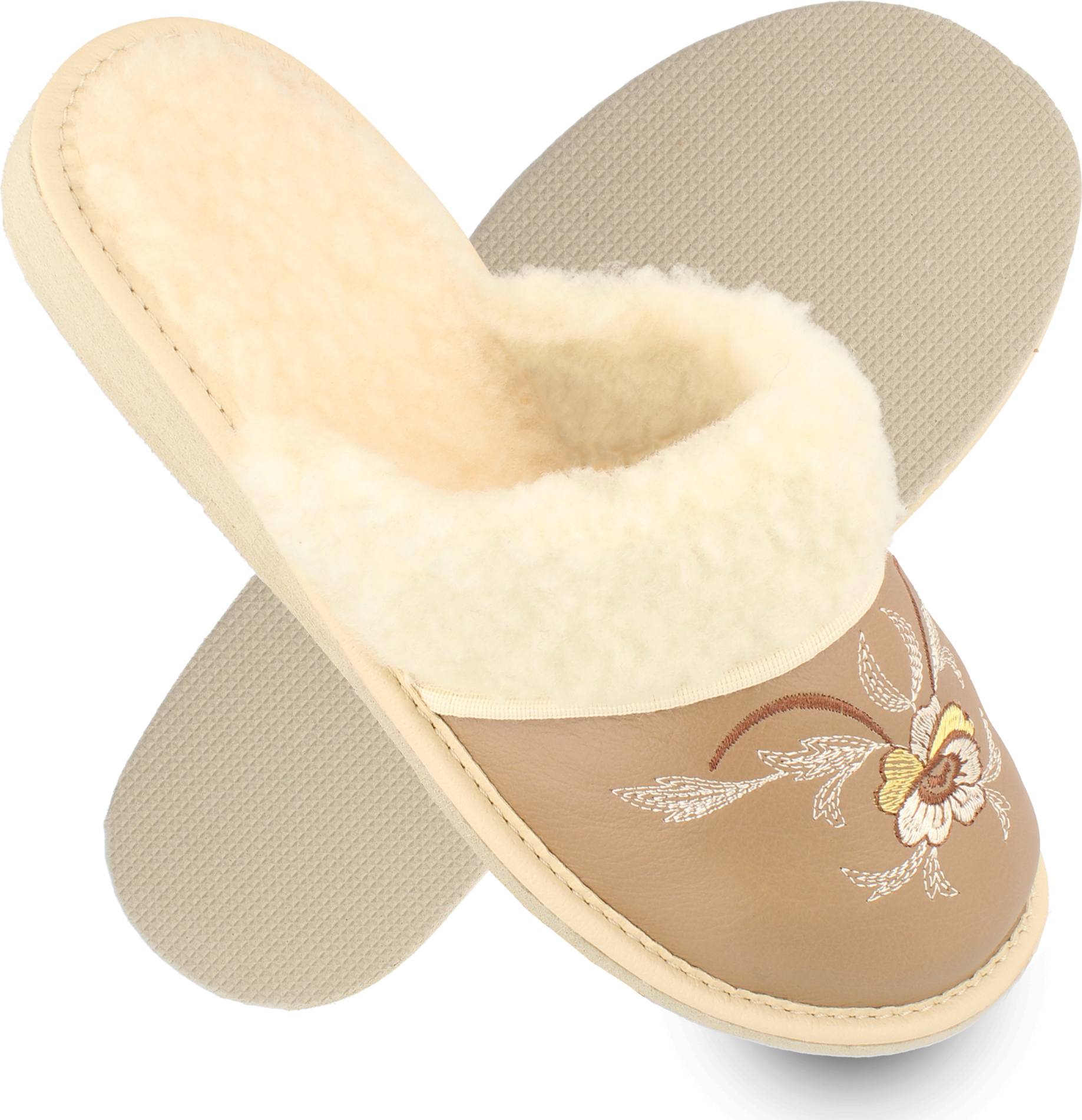 filsko Vara Hübsche Winter Pantoffeln mit Schafwolle für Damen Hausschuh (beige)