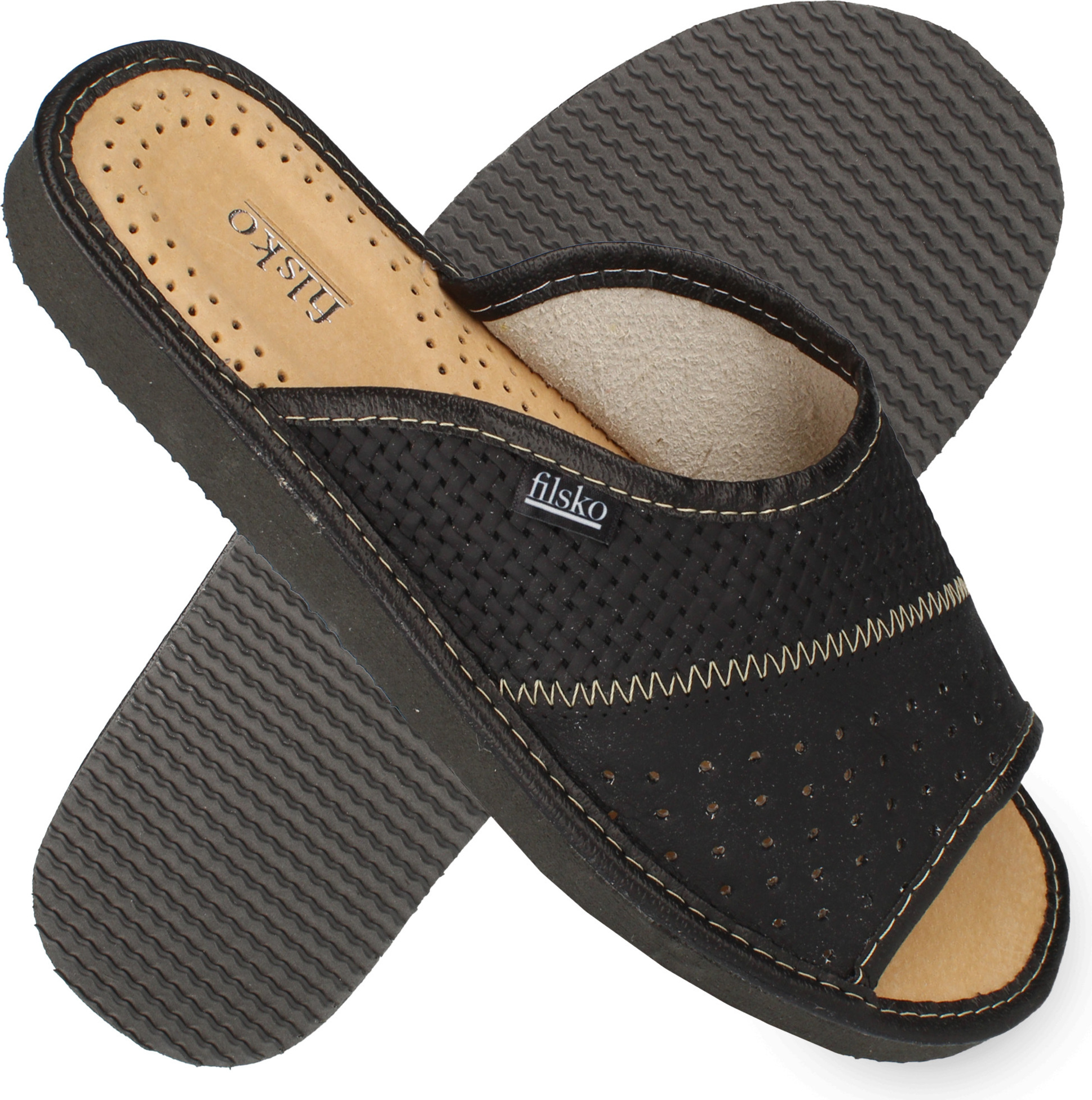 filsko Veere Herren offen aus Leder Hausschuh Lederschuhe (schwarz)