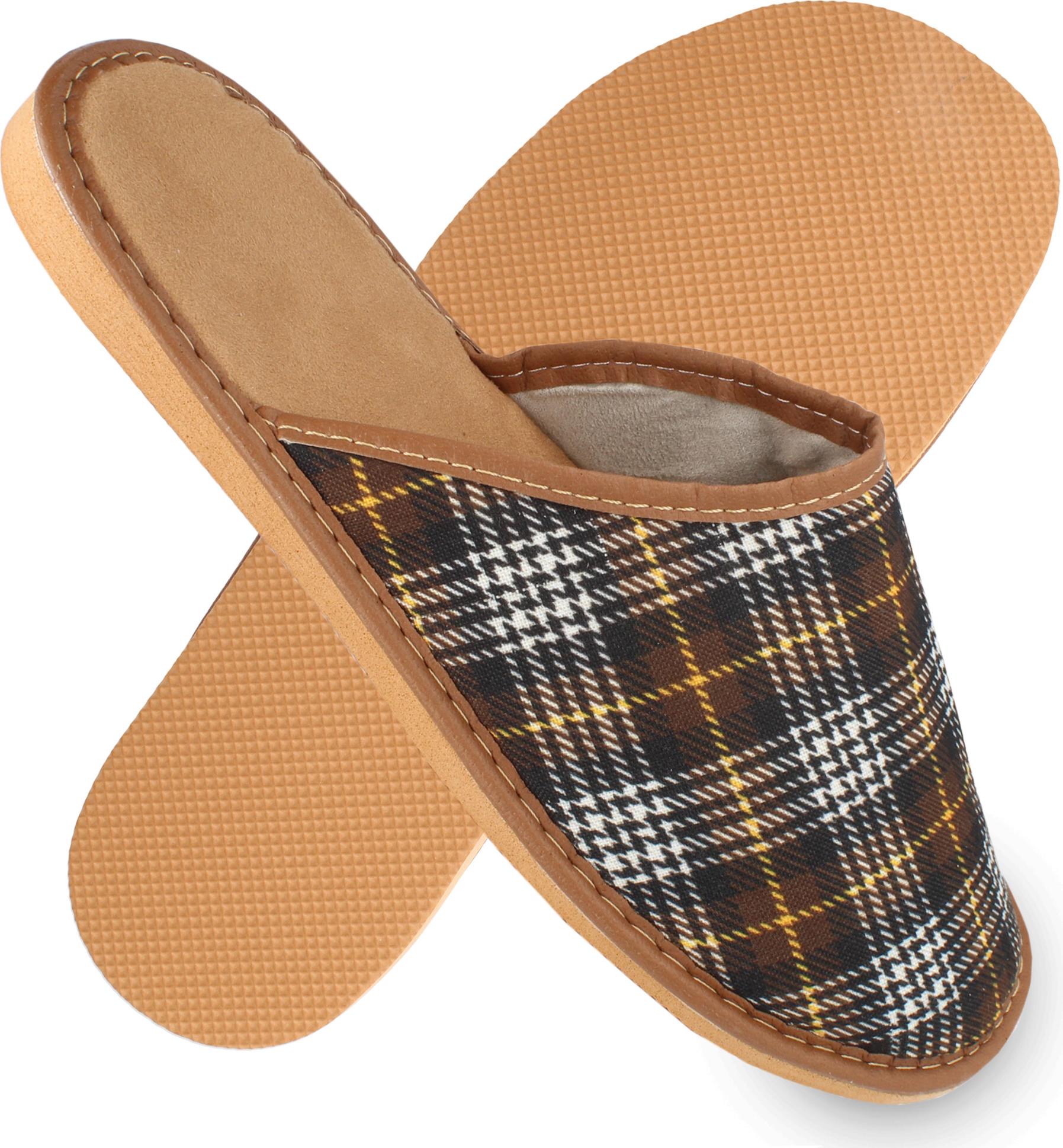 filsko Vejen Herren Hausschuh leichte Pantoffeln, kariert blau oder braun, samtweich (braun)