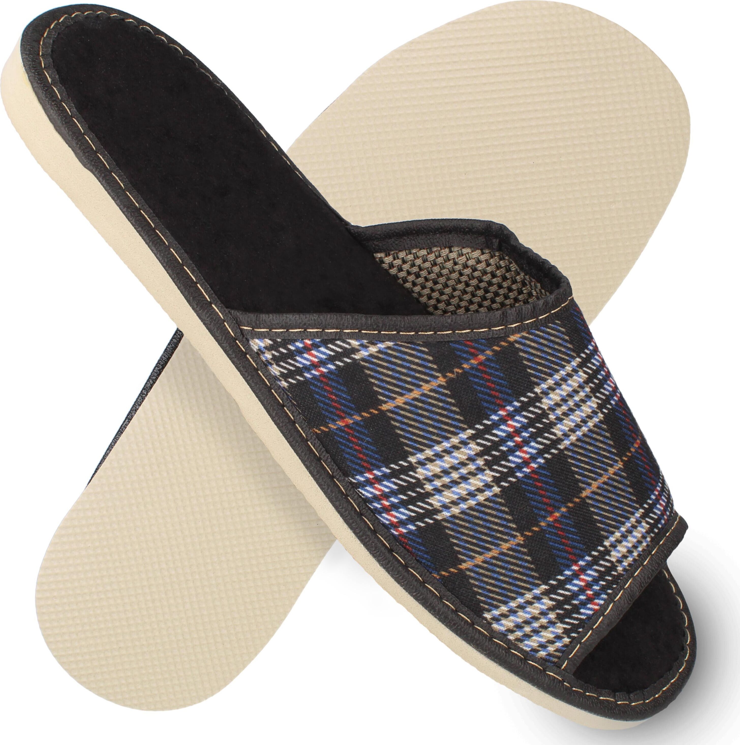 Diese offenen karierten Slipper sind perfekt für jeden, der genug von eintönigen Hausschuhen hat. +
