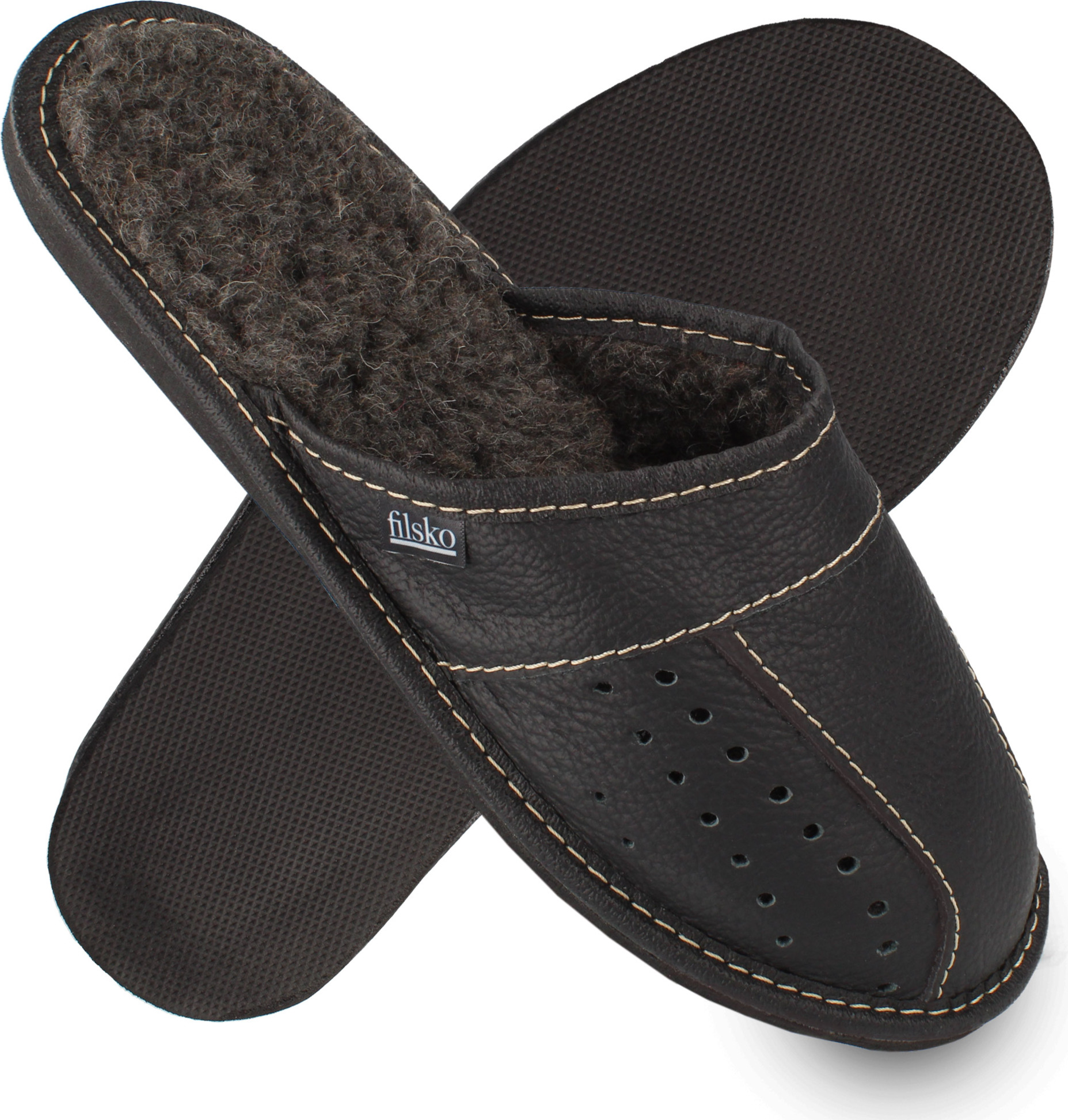 filsko Wolmar Herren Hausschuh (1 Paar, Obermaterial aus Leder) bis Schuhgröße 50, Pantoffeln, Slip-On (Winter)