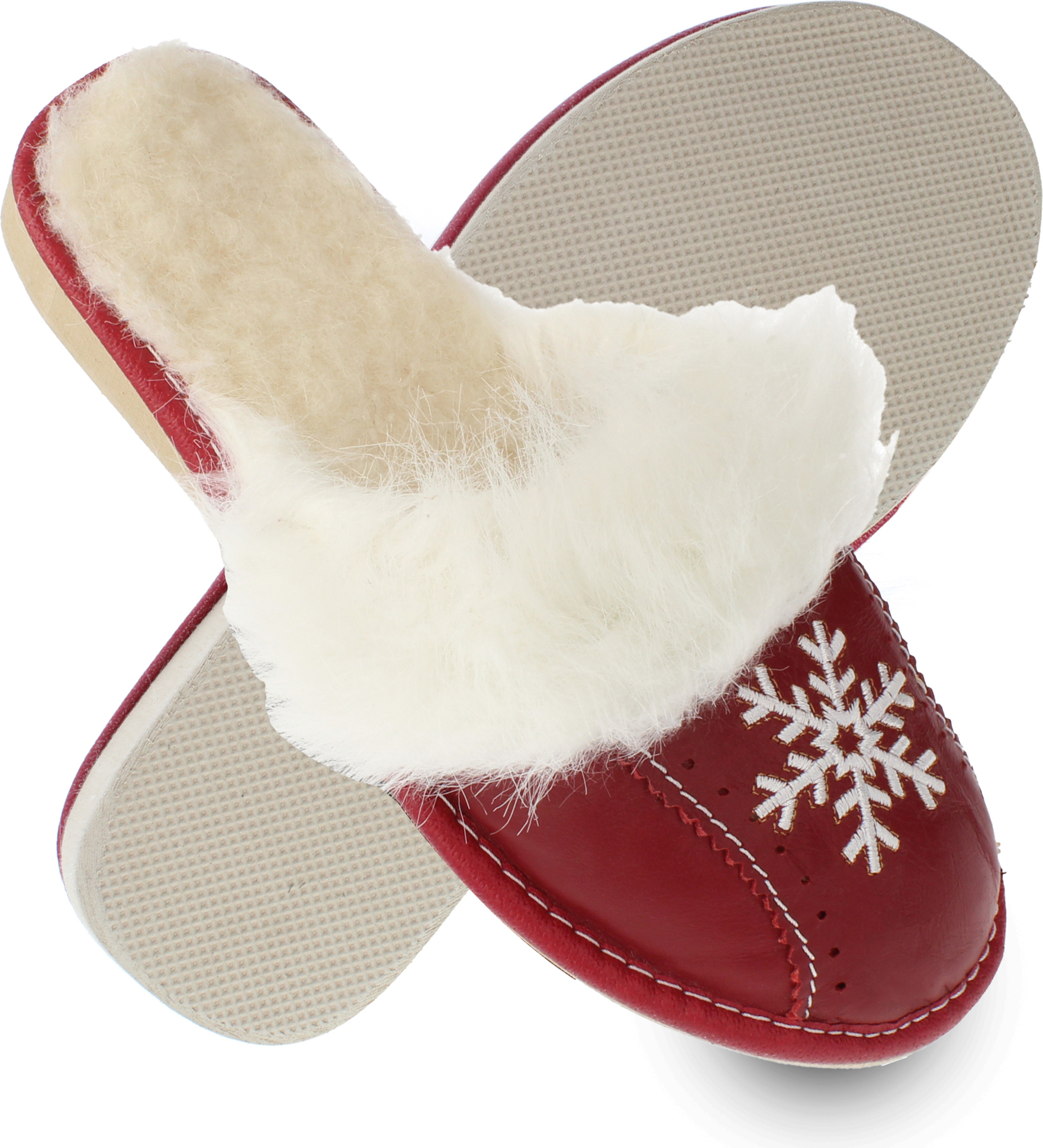 filsko Zofingen Damen Hausschuh Schneeflocke, Fellbesatz, Fellkragen (rot)