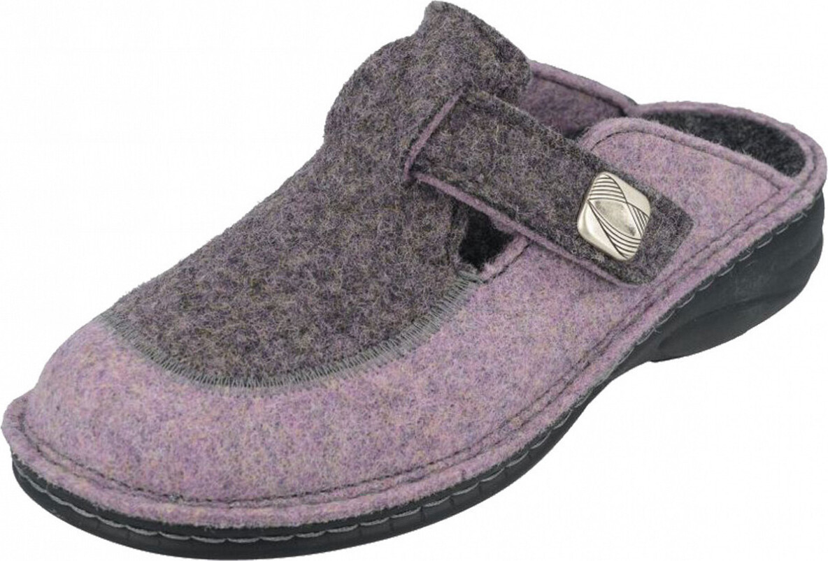 Hinzu kommt die leicht biegsame und dennoch abriebfeste PU-Sohle, die die natürliche Abrollbewegung Ihres Fußes beim Gehen optimal unterstützt.Das Modell wurde speziell für den kräftigeren Fuß entwickelt und ist auch insbesondere für Maß-Einlagen geeignet.r Maß-Einlagen geeignet.Geschlecht: DamenLeistenform: ClassicKategorie: clogsMaterial: Filz