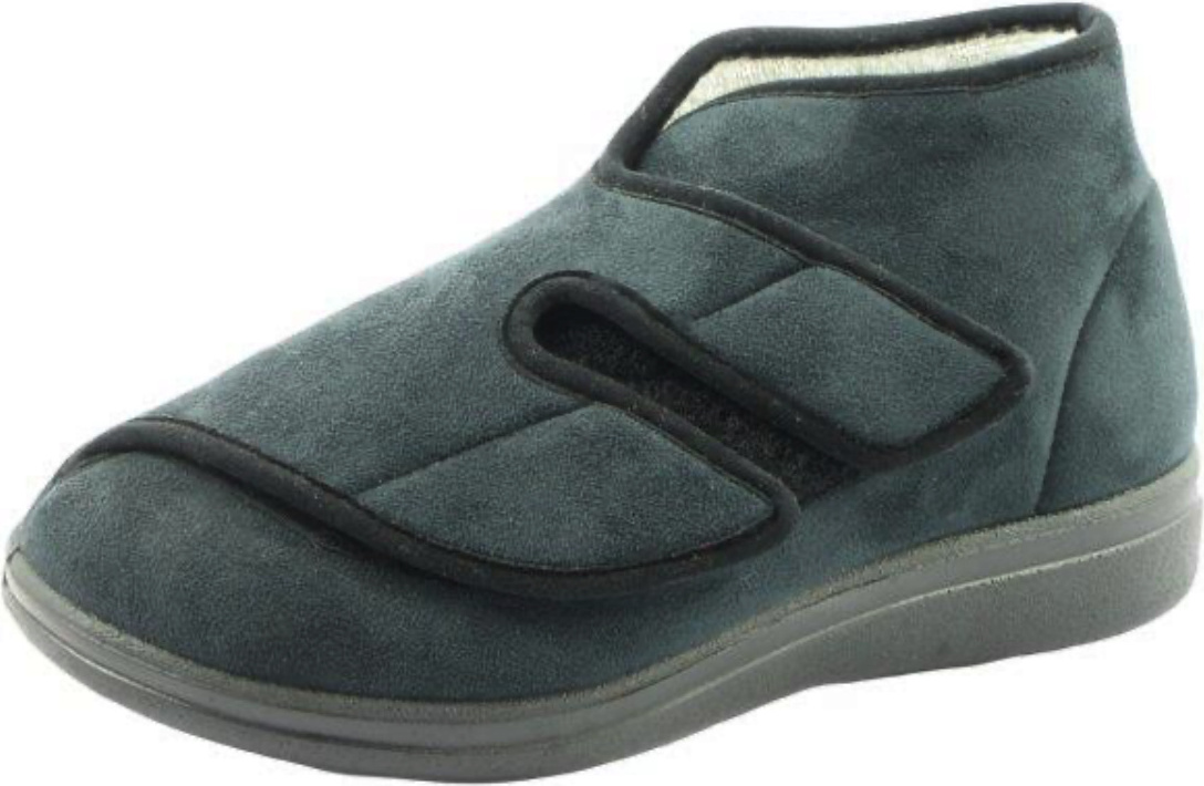 Das Obermaterial bestet aus Microvelours. Der Hausschuh ist mit zwei Klettverschlussriemen ausgestattet, damit Sie ihn noch leichter und vor allem schneller anziehen können, wenn Sie nach einem langen Tag nach Hause kommen.