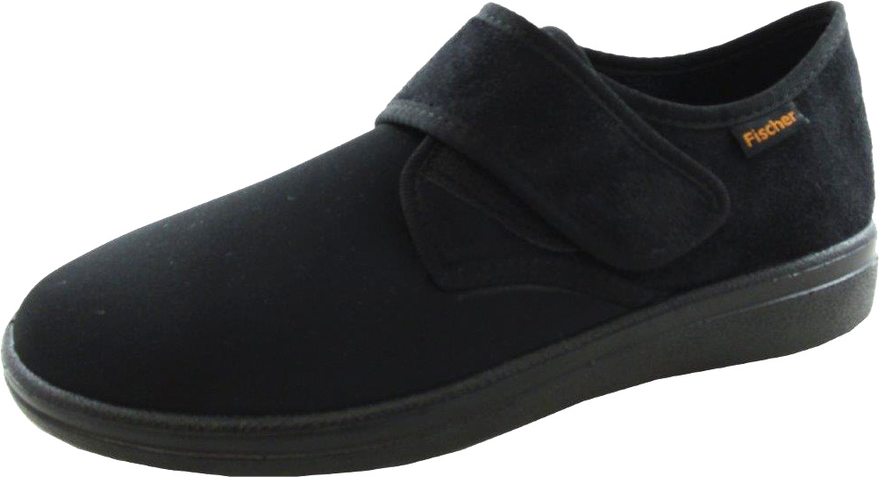 Fischer-Markenschuh Bad Wiessee Hausschuh aus Stretchmaterial, Frotteefutter, Weite L, Einlegesohle herausnehmbar (schwarz)