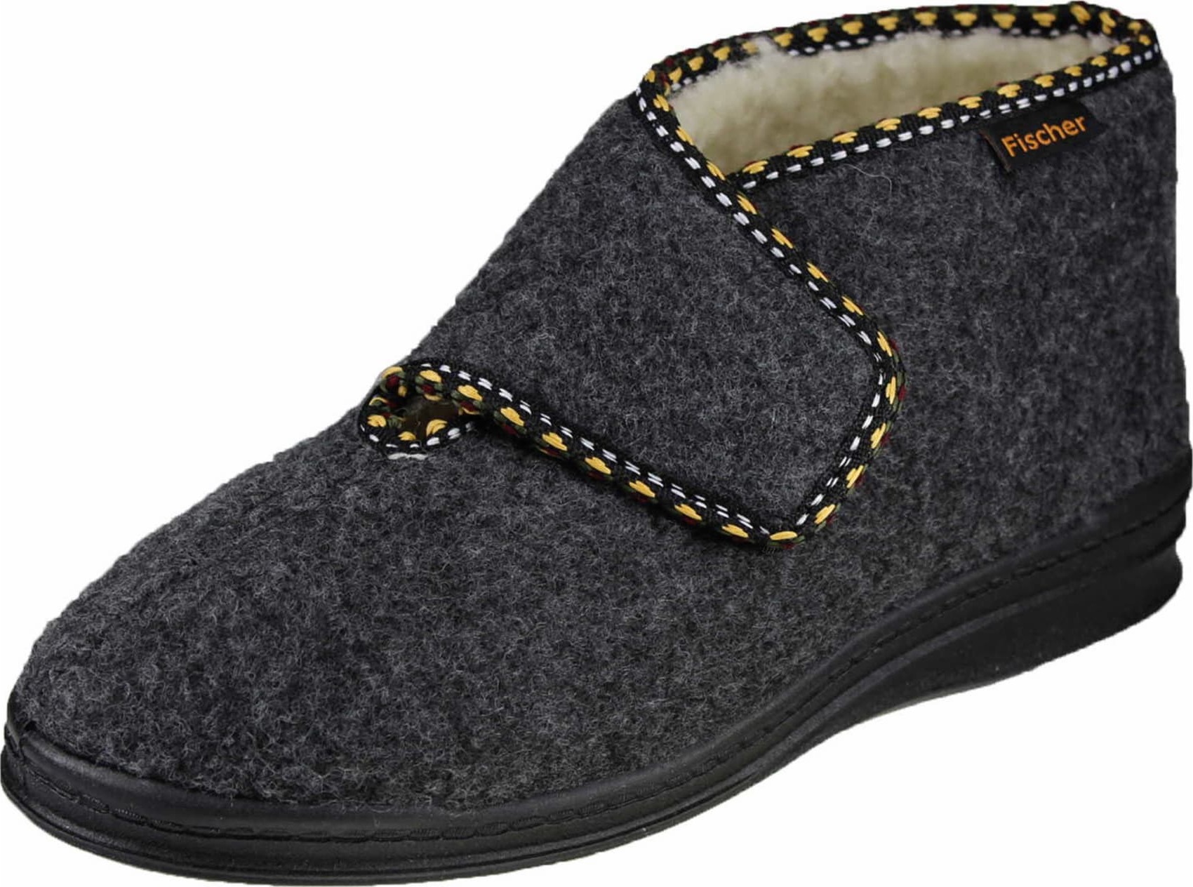 Fischer-Markenschuh Basti Hausschuh Filzloden, Schurwollfutter, mit Klettverschluss (grau)