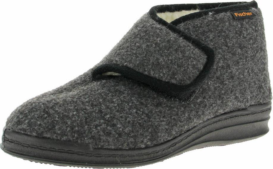 Fischer-Markenschuh Basti Hausschuh mit Klettverschluss, mit Schurwollfutter, Weite H (grau)