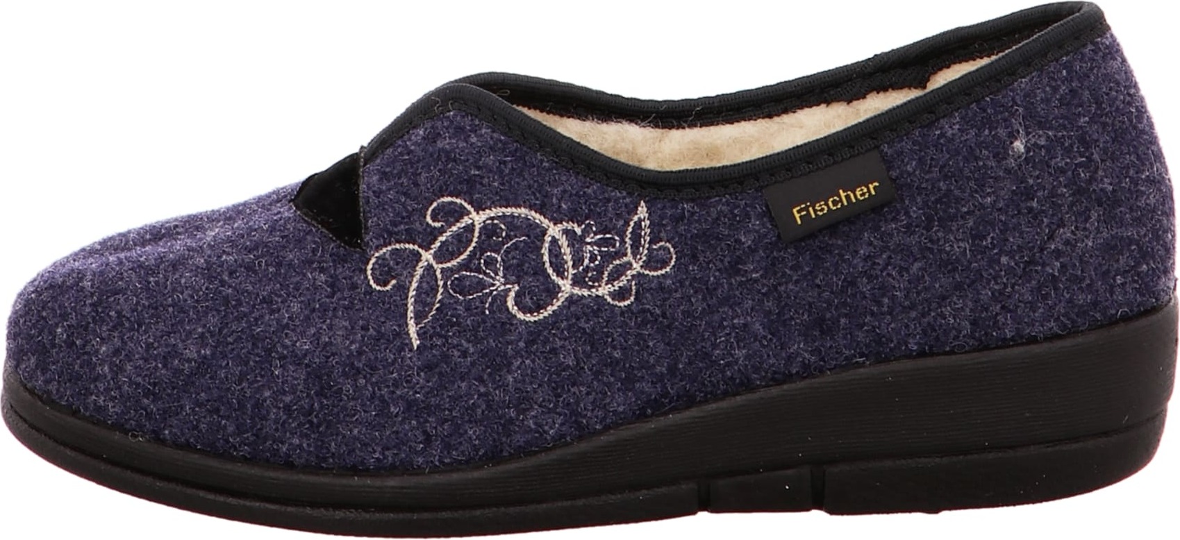 Fischer-Markenschuh Dora Hausschuh zum Schlupfen, Schurwollfutter, Wollfilz, wärmend (blau)