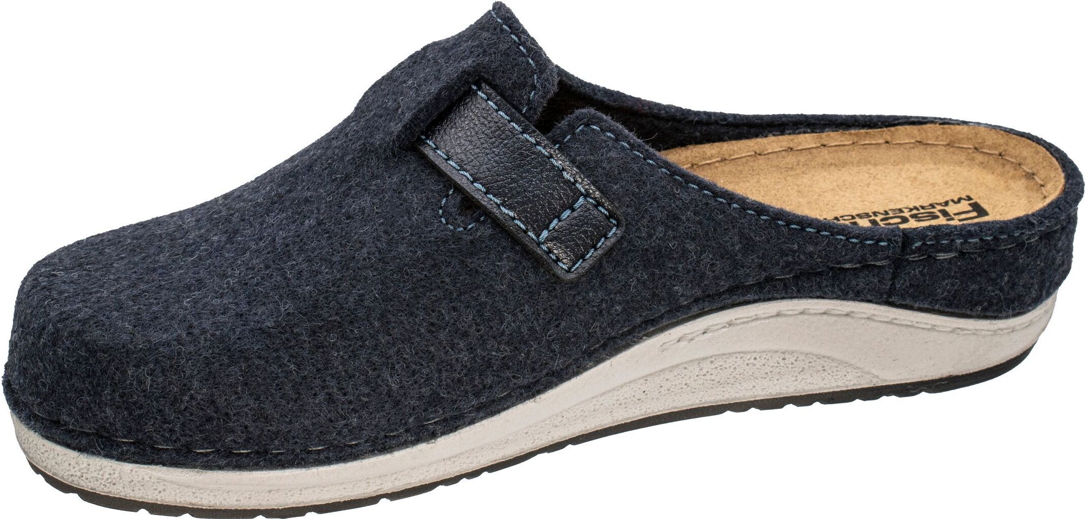 Fischer-Markenschuh Jessica Pantoffel aus recycletm PET Filz, Weite G, mit leicht gepolstertem Lederfußbett (blau)