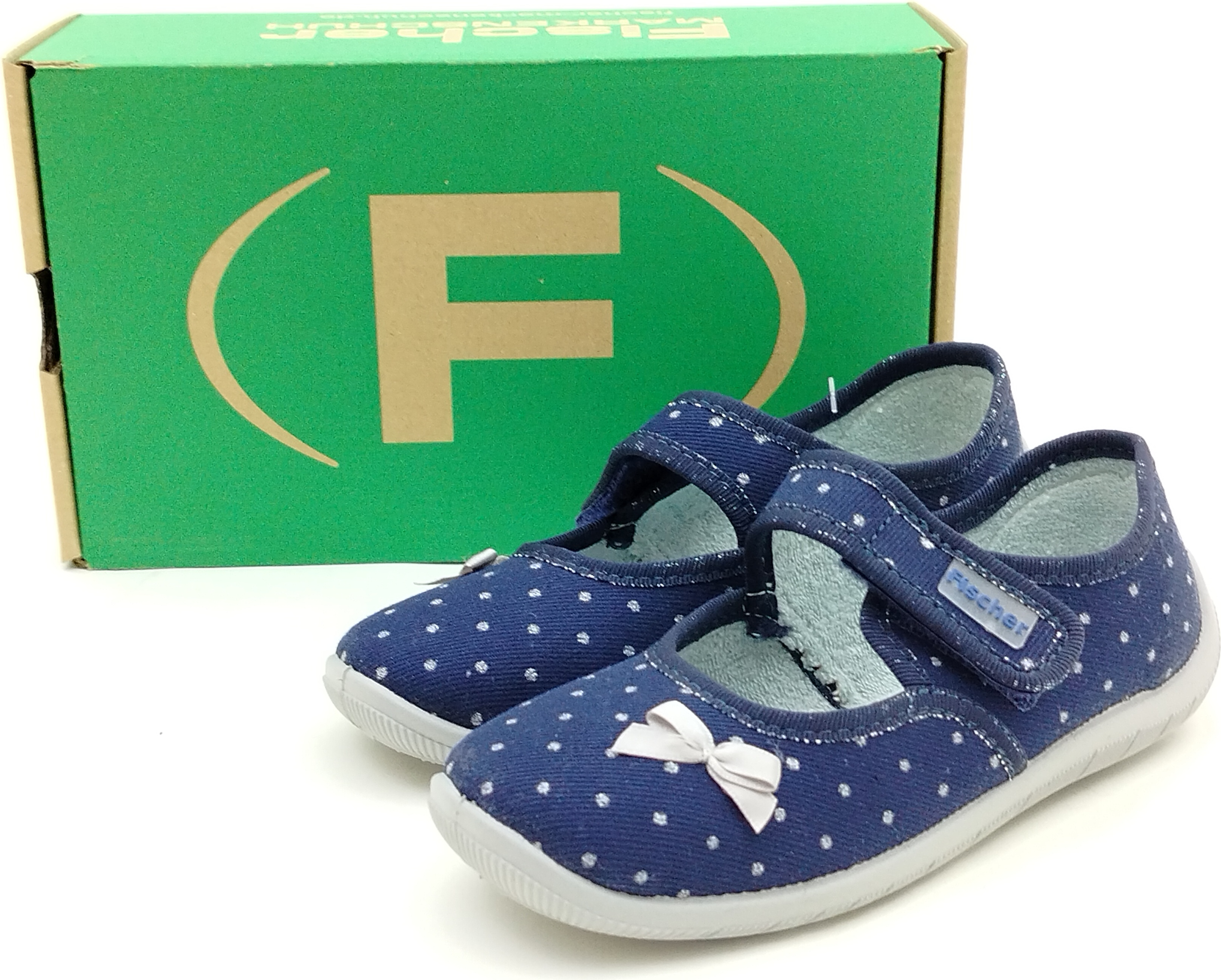 Fischer-Markenschuh Melly Hausschuh aus Baumwollstoff, mit Baumwoll-Frotteefutter, mit Schleife (blau)