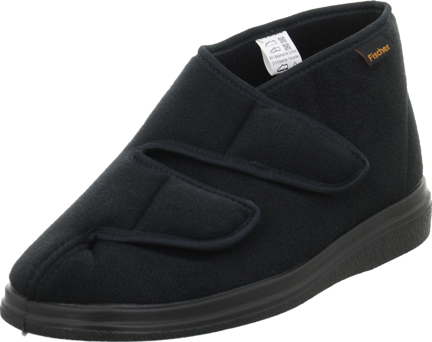 Fischer-Markenschuh Ortho Hausschuh mit Klettverschluss, Weite K, Einlegesohle herausnehmbar (schwarz)