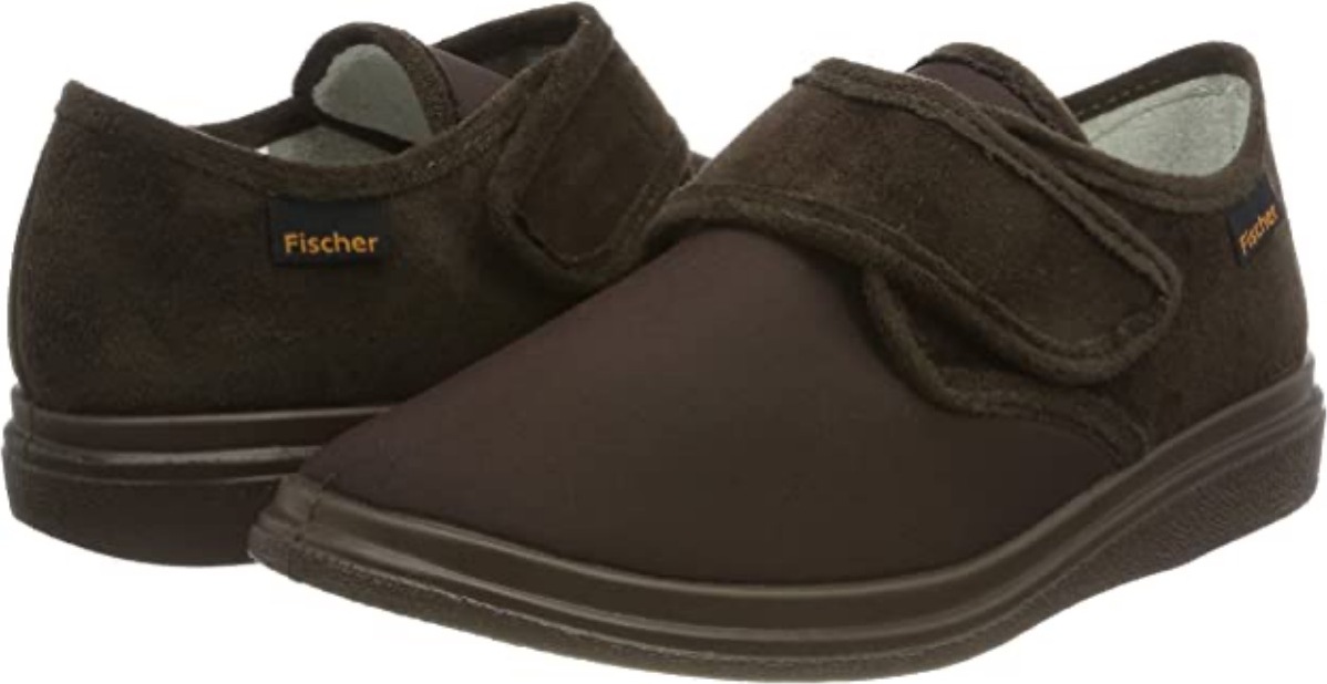 Fischer-Markenschuh Ortho Hausschuh mit Klettverschluss, Weite K, Stretch, Einlegesohle herausnehmbar (braun)