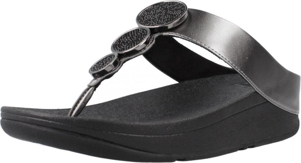 FitFlop HALO BEAD-CIRCLE METALLIC TOE-POST SANDALS Dianette Pool Slides, Pantolette mit dämpfender Zwischensohlentechnologie (schwarz/silber)