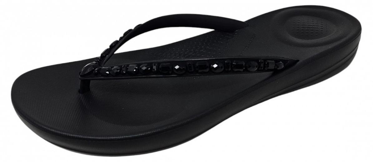 FitFlop iQUSHION MULTI-CRYSTAL Zehentrenner, Sandale, Flats, Pool Slides mit Schmucksteinen verziert (schwarz)