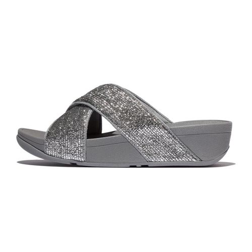 FitFlop LULU CRINKLED SHIMMER Pantolette Slides, Badeschuh, Abendmode mit Glitter (grau/silber)