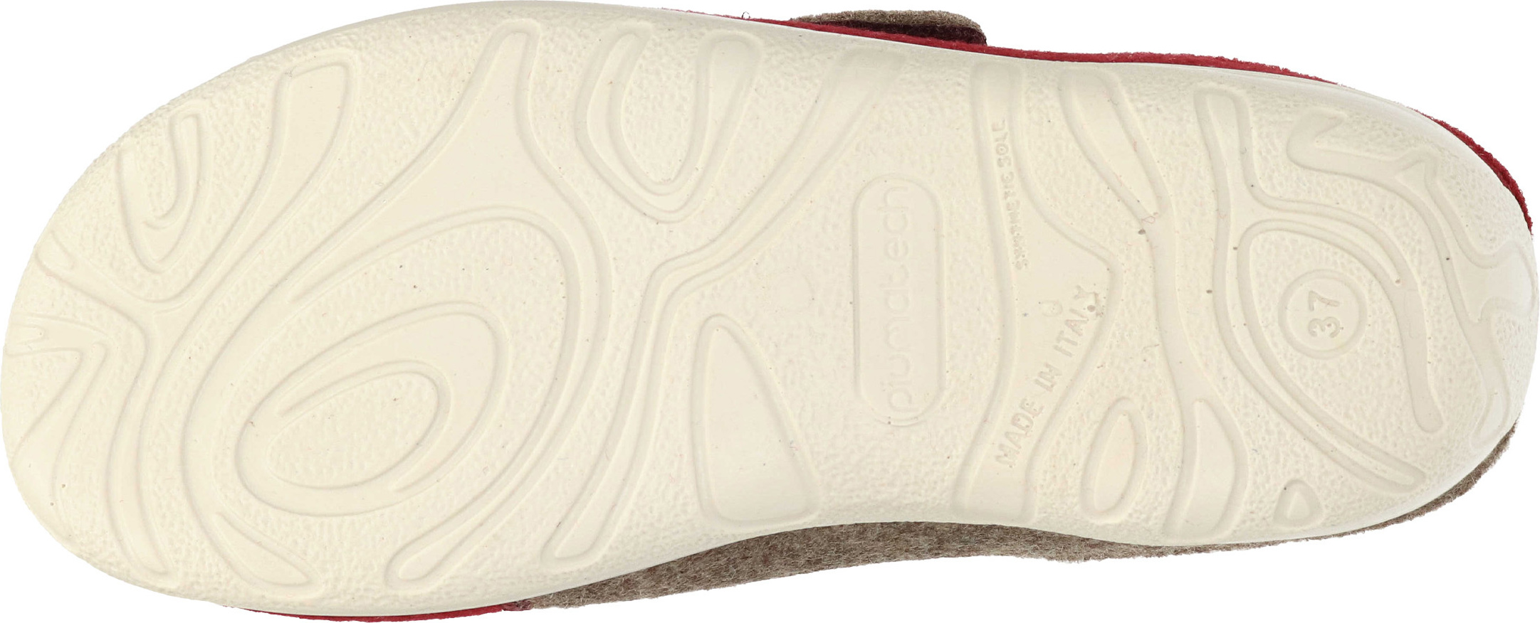 Dieser Damen Hausschuh vom italienischen Hersteller Fly Flot überzeugt durch sein besonders leichtes Gewicht und die ausgefeilte anatomische Ausstattung.Er ist aus hochwertigem Obermaterial aus Filz in Rot und Beige gefertigt und wurde mit einer schicken Stickerei versehen.Mit einer komfortabel gepolsterten Sohle und einem Wechselfußbett, welches den deine Füße.Die leicht profilierte Synthetik Laufsohle gibt guten Halt in Haus und Hof und der seitliche Klettverschluss sorgt für eine perfekte Passform und ist mit einer kleinen Schleife verziert.