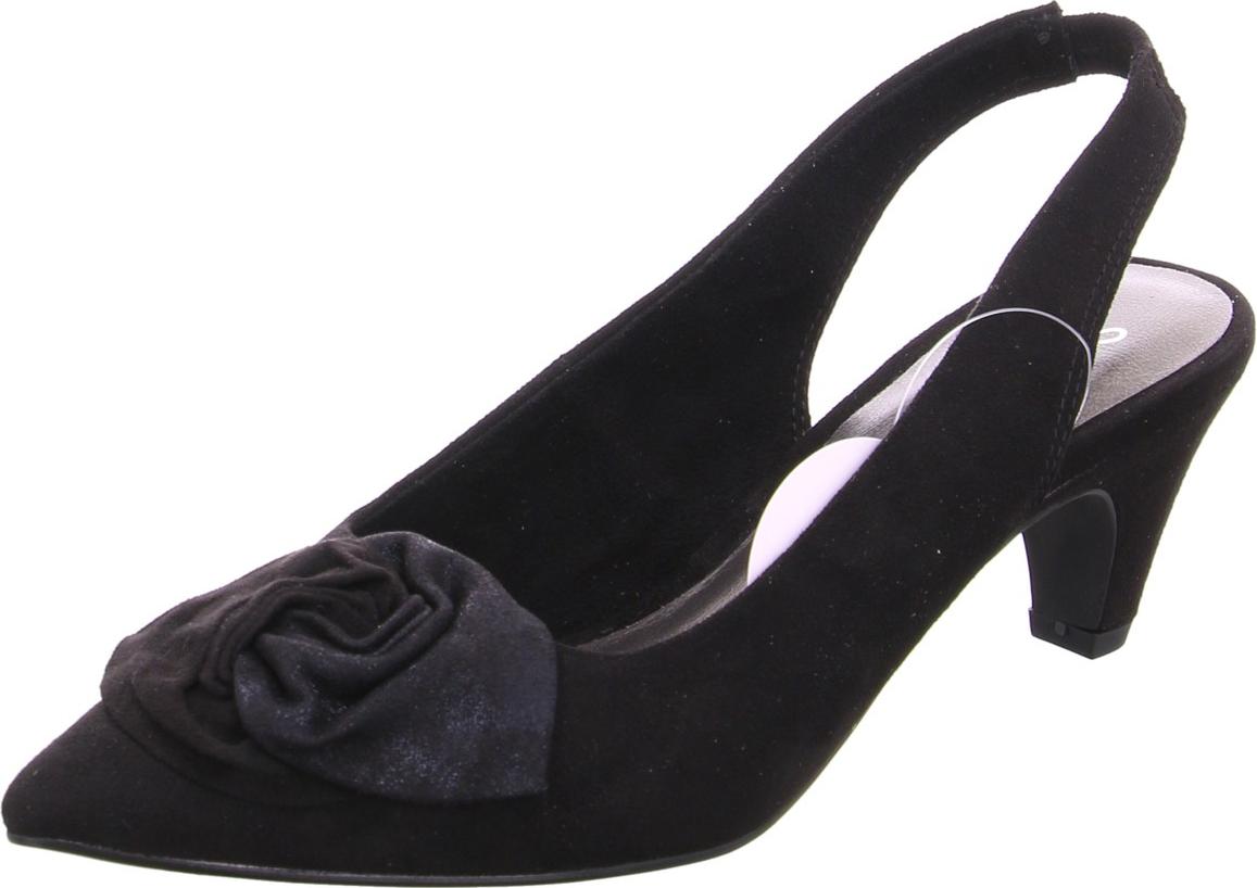 Schwarze Sling-Pumps mit Blüten-Applikation vorne. +