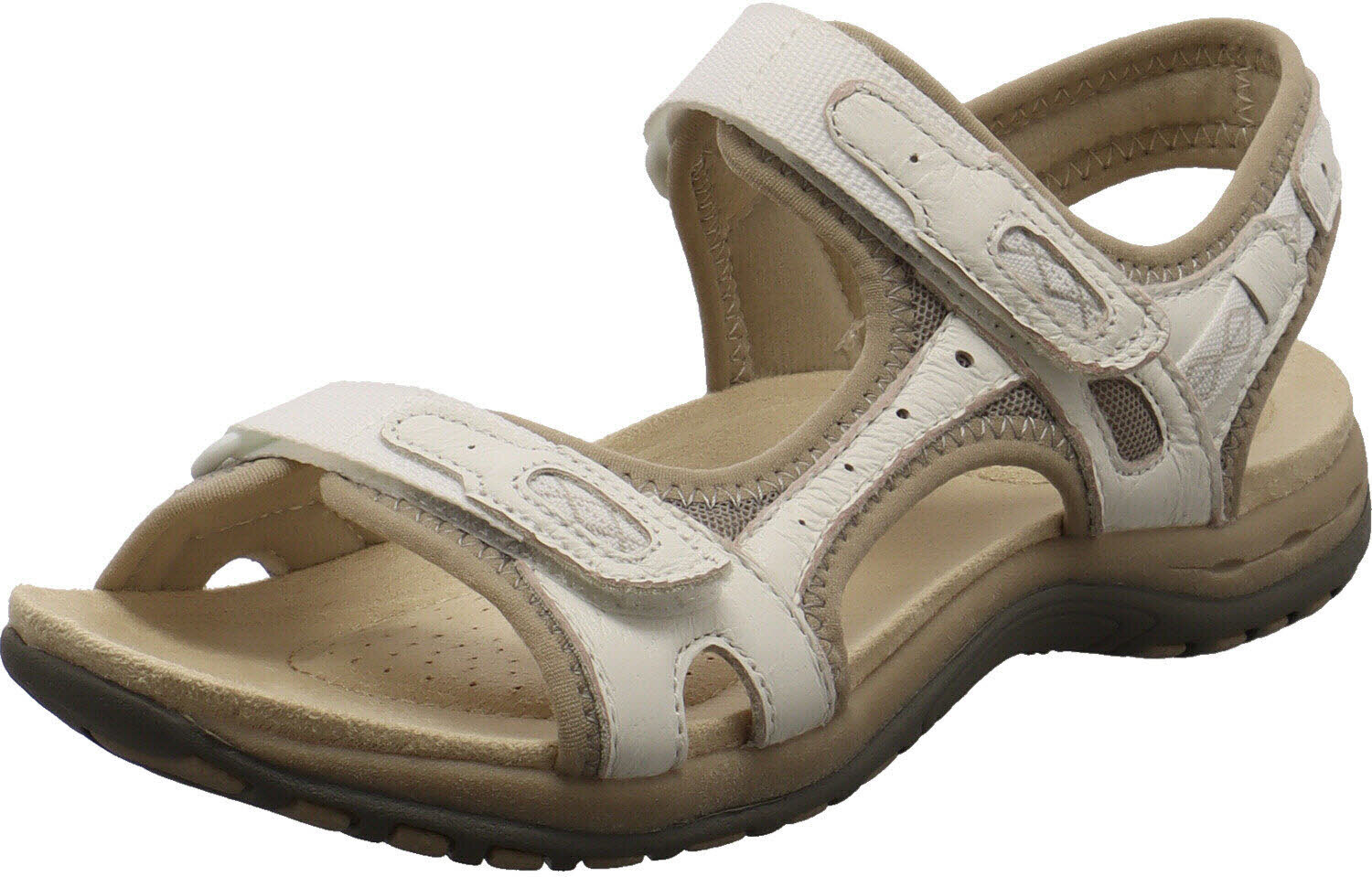 Diese Damen Sandale Frisco von Free Spirit ist eine tolle Wahl für die heißen Tage des Jahres.Das Obermaterial wurde aus Echtleder in Weiß gefertigt und ist mit textilen Mesh Einsätzen versehen. +