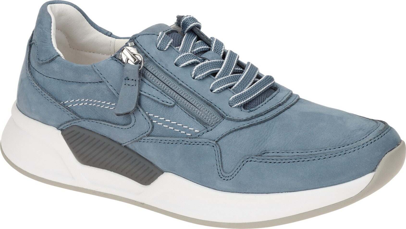 Marke: GaborModell-Nr.: 46.957.26Modellname: ROLLINGSOFTArt: Damenschuhe - sportliche Schnür- Halbschuhe, SneakerFarbe: hellblau +, grau +, Sohle in weiß (heaven)Obermaterial: Echtleder - Nubuck (Nubuk DriTan)Innenfutter: Echtleder und TextilInnensohle: Echtleder Komfort FußbettWechselfußbett: herausnehmbare InnensohleLaufsohle: GummisohleVerschluss: Schnürung und ReißverschlussAbsatz: flach - kein AbsatzSchuhform: rundGrößenangabe: fällt normal ausWeitenangabe: G - normal Weiteinterne Artikelnummer für Ihre Rückfragen: 236-86-0074