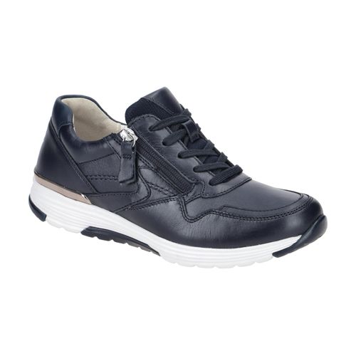 Marke: GaborModell-Nr.: 66.978.56Modellname: ROLLINGSOFTArt: Damenschuhe - sportliche Schnür- Halbschuhe, SneakerFarbe: dunkelblau +, weiß +, silber (midnight)Obermaterial: Echtleder - Glattleder (Chevron DriTan)Innenfutter: Echtleder und TextilInnensohle: Echtleder Komfort FußbettWechselfußbett: herausnehmbare InnensohleLaufsohle: Gummi +, Polyurethan (PU) - extra leichtVerschluss: Schnürung und ReißverschlussAbsatz: flach - kein Absatz, Keil ca. +