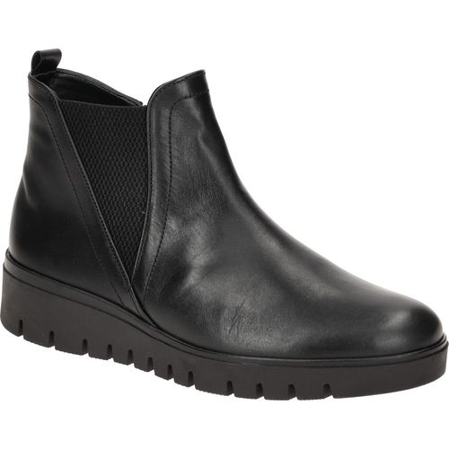 Marke: GaborModell-Nr.: 72.061.57Modellname: 72.061 - GABOR comfortArt: Damen Stiefeletten - bequeme Stiefelette, Stiefelette im Chelsea StilFarbe: schwarz (schwarz)Obermaterial: Echtleder - Glattleder (Kalb - Foulardcalf)Innenfutter: Textil - weich gepolstert, Melange - dünn gefüttertInnensohle: Textil FußbettWechselfußbett: herausnehmbare InnensohleLaufsohle: GummisohleVerschluss: ReißverschlußAbsatz: Keilabsatz / Wedge, ca. +