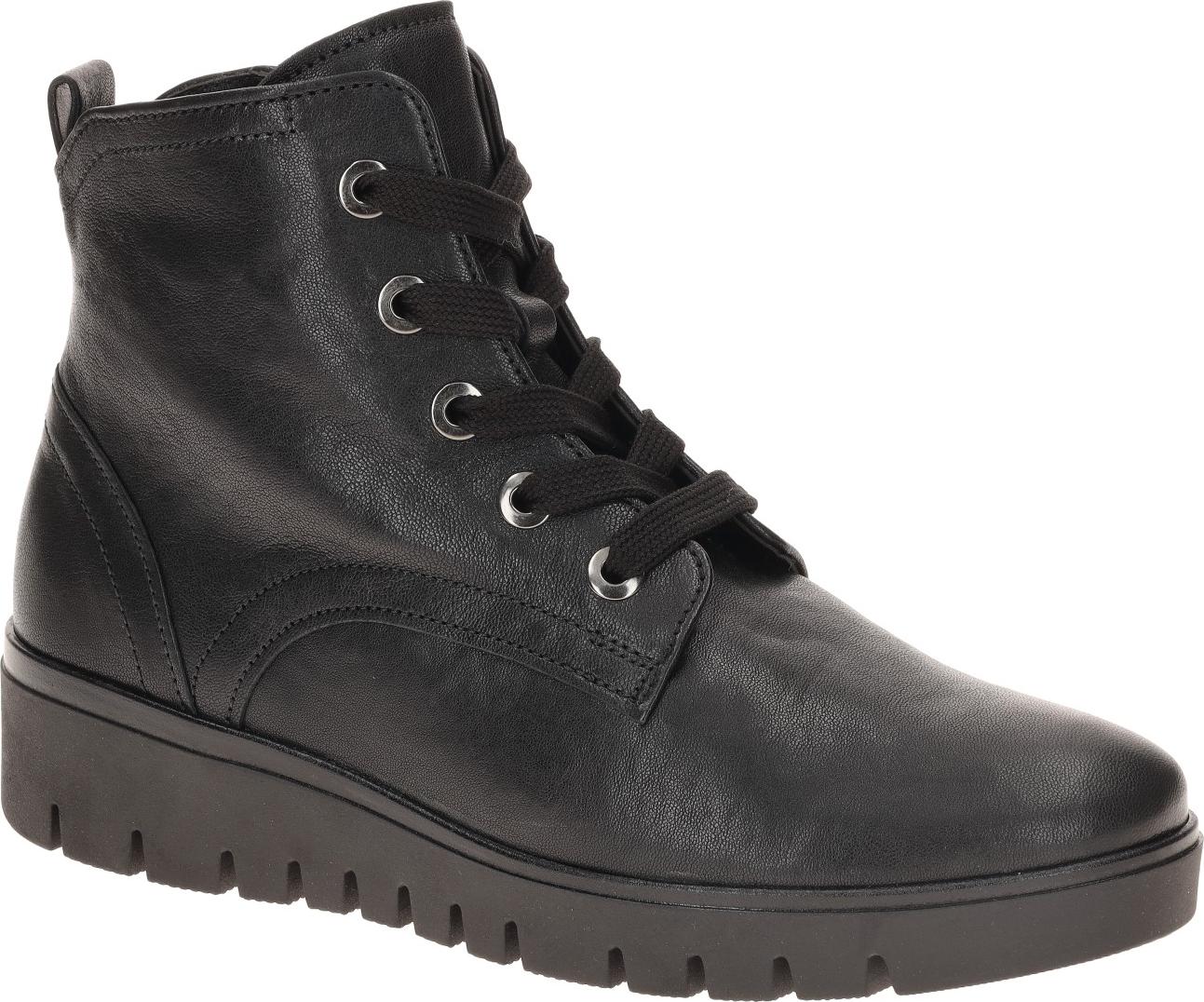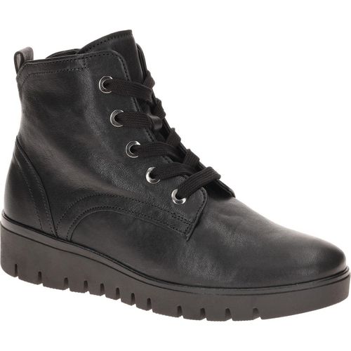 Marke: GaborModell-Nr.: 72.065.57Modellname: 72.065 - GABOR comfortArt: Damen Stiefeletten - bequeme StiefeletteFarbe: schwarz (schwarz)Obermaterial: Echtleder - Glattleder (New Jersey)Innenfutter: Textil - weich gepolstert, Melange - dünn gefüttertInnensohle: Textil FußbettWechselfußbett: nicht herausnehmbare InnensohleLaufsohle: GummisohleVerschluss: Schnürung und ReißverschlussAbsatz: Keilabsatz / Wedge, ca. +