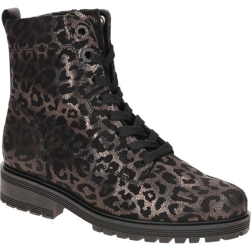 Marke: GaborModell-Nr.: 72.765.67Modellname: 72.765 - PISA - Gabor comfortArt: Damen Stiefeletten - elegante Stiefelette, LaceUp BootsFarbe: Leo-Muster braun +, schwarz (rame/schwarz)Obermaterial: Echtleder - Velour - Rauhleder (Leo Pauli Metallic)Innenfutter: Textil - weich gepolstert, MicroInnensohle: Textil Fußbett, OptiFit =, 1x Textil und 1x LederLaufsohle: Gummisohle, profiliertVerschluss: Schnürung und ReißverschlussAbsatz: BlockabsatzAbsatzhöhe: kleiner Absatz, ca. +