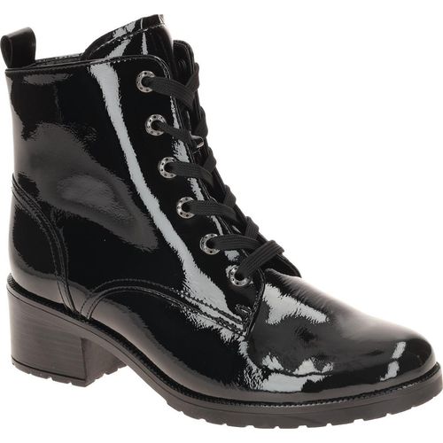Marke: GaborModell-Nr.: 72.816.97Modellname: 72.816 - Gabor comfortArt: Damen Stiefeletten - elegante Stiefelette, Lace up BootsFarbe: schwarz (schwarz)Obermaterial: Echtleder - Lack Leder (Knautschlack)Innenfutter: Textil - weich gepolstert, MicroInnensohle: Textil Fußbett, OptiFit =, 1x Textil und 1x LederLaufsohle: GummisohleVerschluss: Schnürung und ReißverschlussAbsatz: BlockabsatzAbsatzhöhe: mittlerer Absatz, ca. +