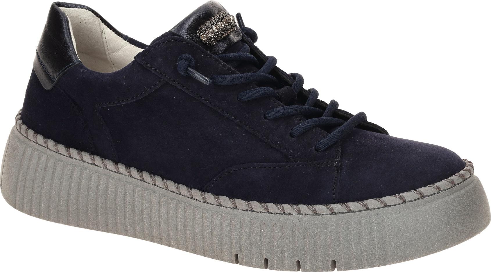 Marke: GaborModell-Nr.: 73.243.16Modellname: 73.243 - Gabor BEST FITTINGArt: Damenschuhe - Halbschuhe - SneakerFarbe: dunkelblau +, Sohle in grau (atlantic / night blue)Obermaterial: Velourleder +, Glattleder Mix (Samtchevreau / City / Schmuckbesatz)Innenfutter: Echtleder und TextilInnensohle: Echtleder Komfort FußbettWechselfußbett: herausnehmbare InnensohleLaufsohle: Gummisohle, Plateau ca. +