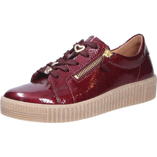 Marke: GaborModell-Nr.: 73.339.95Modellname: 73.339 - Gabor BEST FITTINGArt: Damenschuhe - Halbschuhe - SneakerFarbe: dunkelrot +, gold +, Sohle in natur hellbraun (bordo (gold))Obermaterial: Echtleder - Lack Leder (Siviglia Lack, Schmuckelement tauschbar)Innenfutter: Echtleder und TextilInnensohle: Echtleder - FußbettWechselfußbett: herausnehmbare InnensohleLaufsohle: GummisohleVerschluss: Schnürung und Reißverschluss, 2fachAbsatz: flach - kein Absatz, Keil ca. +