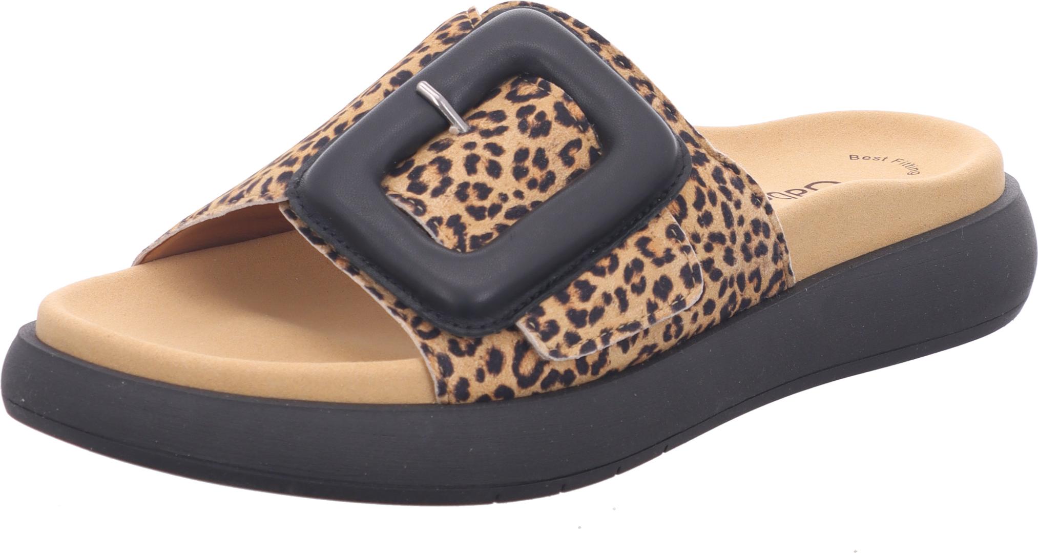 Gabor Damen Pantolette aus Rauleder in Leo mit Leder-Innensohle, Klettverschluss und großer Zierschnalle