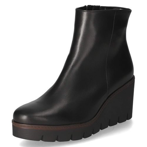 Gabor Damen Stiefelette aus Glattleder in Schwarz mit Reißverschluss, Flauschfutter und 5 cm Keilabsatz.