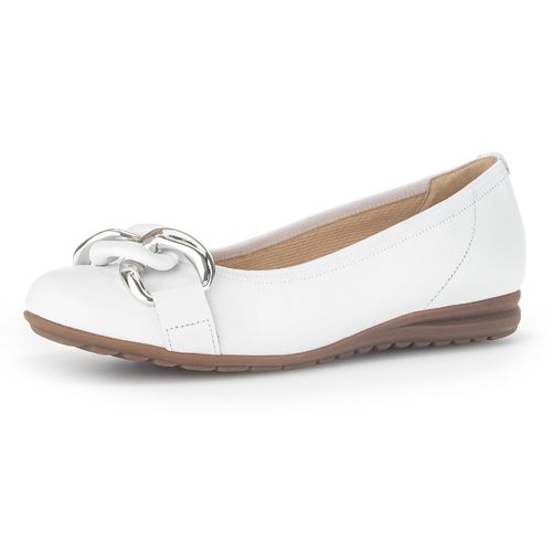 Gabor FLORENZ Ballerina Hochzeitsschuh, Flache Schuhe, Slipper mit eleganter Zierkette (weiß)