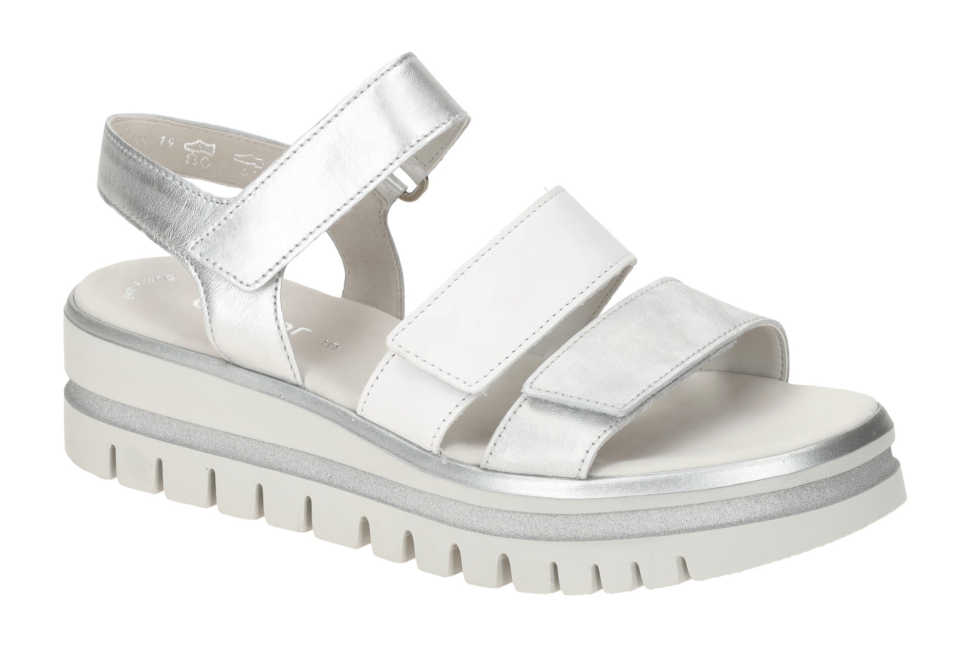 Gabor Keilsandalette, Sommerschuh, Sandale, Keilabsatz, mit drei Klettverschlüssen (silber/weiß)