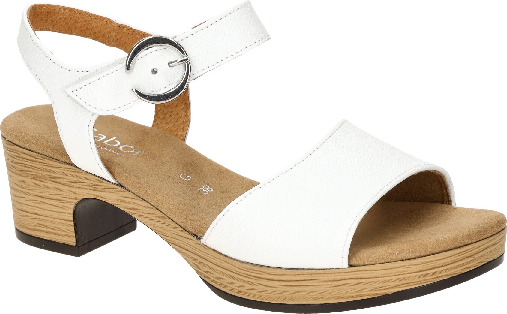 Gabor KRETA Sandalette, Blockabsatz, Sommerschuh, Sandale mit Zierschnalle, Weite G (weit) (weiß)