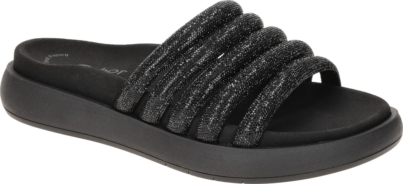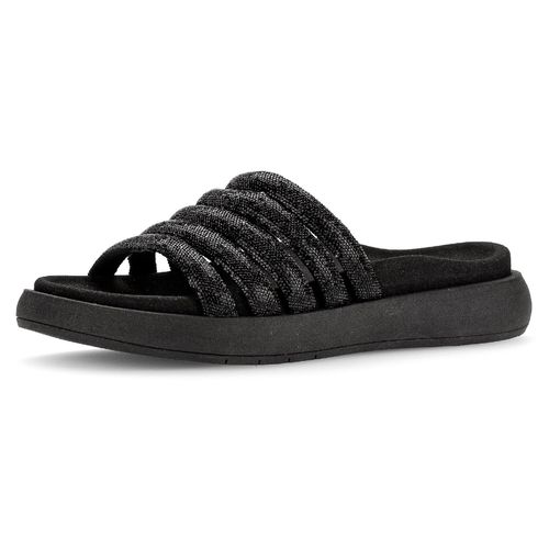 Schlüpfe die elegante Pantolette von Gabor, die mit ihren kleinen Schmucksteinchen auf den Riemchen jedem Schritt einen Hauch von Glamour verleiht! Diese Pantolette ist die perfekte Wahl für modebewusste Frauen, die Komfort und Stil in einem Schuh suchen. +