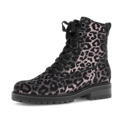 Gabor PISA Schnürstiefelette, Blocakabsatz, Schnürboots im Animal-Look, Komfortweite G (schwarz)