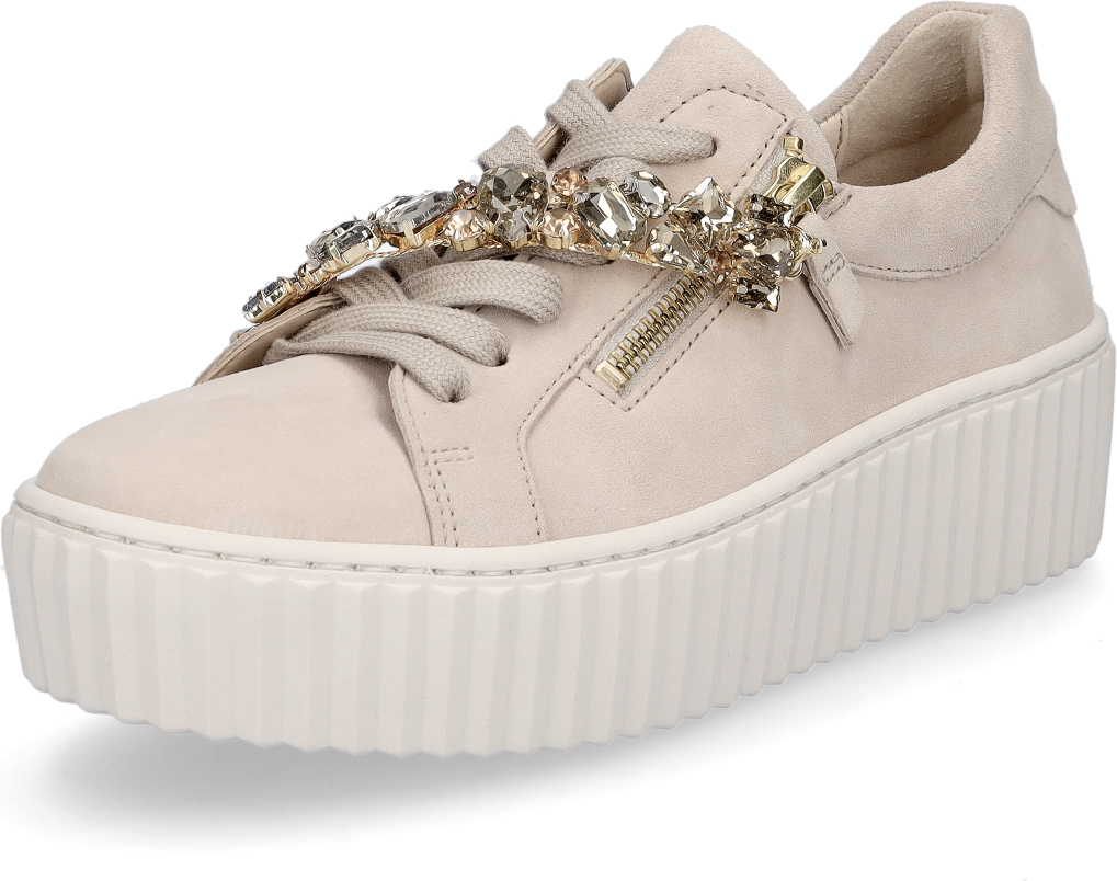 Entdecken Sie den Gabor Plateausneaker – den perfekten Freizeitschuh, der Komfort und Stil mühelos vereint. Dieser elegante Halbschuh in zeitlosem Beige bietet eine einzigartige Passform, die speziell für breitere Füße entwickelt wurde. Mit einer erweiterten Auftrittsfläche im Ballenbereich sorgt der Schuh für einen besonders hohen Tragekomfort und eine bequeme, stabile Haltung. +