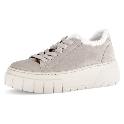 Plateausneaker GABOR, Damen, Gr. 41, beige (hellbeige), Textil, Veloursleder, Schuhe Plateausneaker, Plateau, Freizeitschuh, Halbschuh, Schnürschuh mit Best Fitting