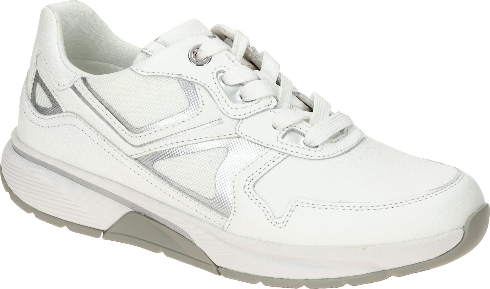 Gabor Rollingsoft Keilsneaker, Freizeitschuh, Halbschuh, Schnürschuh mit herausnehmbarem Fußbett (silber/weiß)