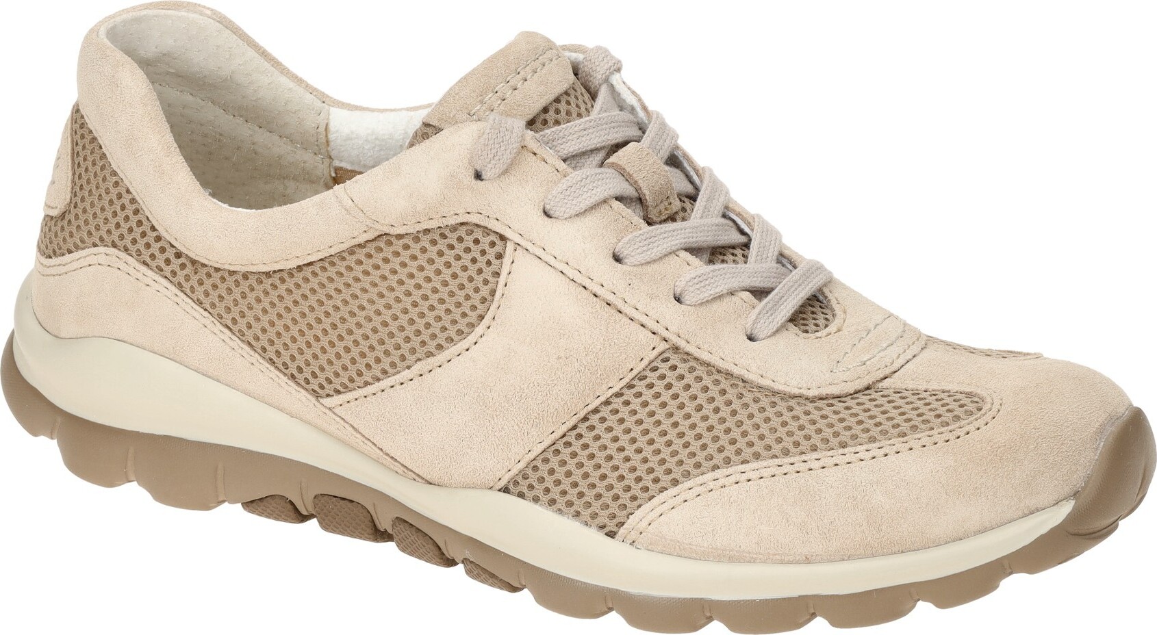 Gabor Rollingsoft Keilsneaker, Freizeitschuh, Halbschuh, Schnürschuh mit Logoschriftzug (beige)