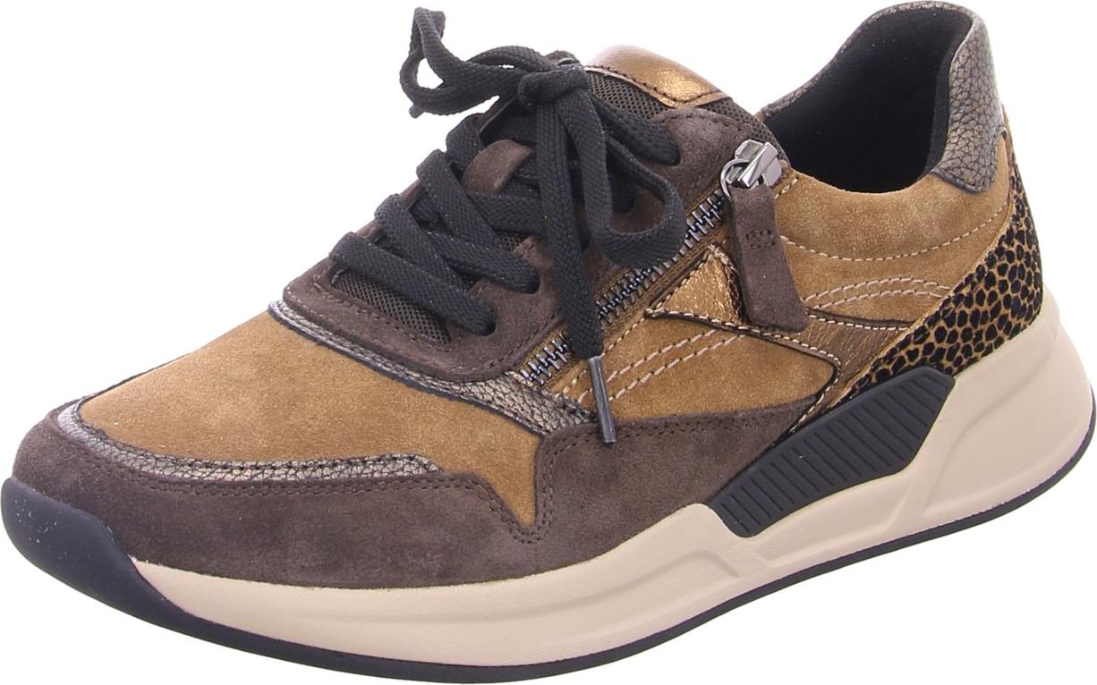 Gabor Rollingsoft Keilsneaker, Schnürschuh, Halbschuh, Freizeitschuh mit seitlichem Reißverschluss (beige/braun)