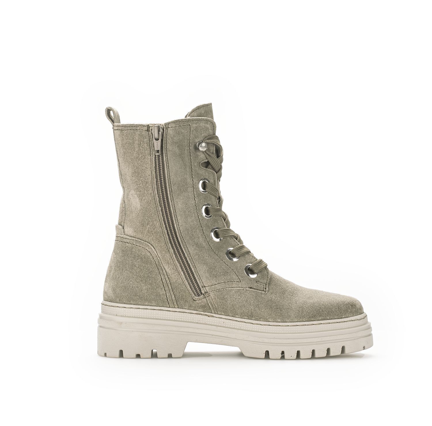 Die Gabor Schnürstiefelette ist ein absolutes Must-Have für stilbewusste Damen, die Komfort und Style vereinen möchten. Die Schnürstiefelette besteht aus hochwertigem salbeifarbenem Leder, das mit seiner natürlichen Schönheit überzeugt. Das dezente hellgrüne Detail an der Ferse verleiht dem Schuh eine frische und moderne Note. +
