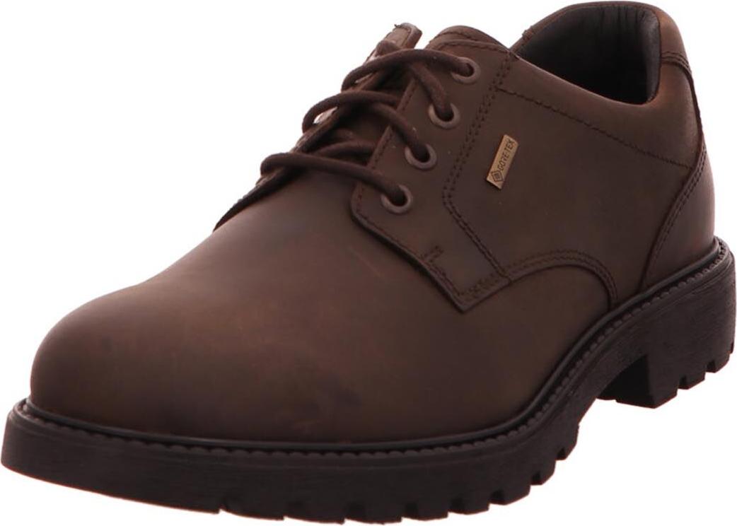Das Obermaterial in braun aus langlebigem Glattleder verleiht diesen Halbschuhen ihre charakteristische Optik. Dank GORE TEX-Membran bleiben die Füße selbst an Regentagen angenehm trocken.