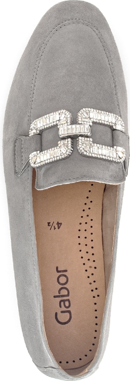 Damen - Slipper aus Leder/Synthetik in grau mit Schlupfeinstieg.